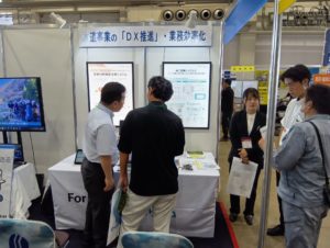 また、株式会社クボタ様との共同企画としまして、同社の持つ管路の老朽度評価や地震の被害予測を考慮した「更新計画策定支援システム」の紹介も併せて行いました。